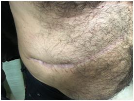 MR NM was consulted by GS, who operated the patient by open technique (04/05/2017), without any serious postsurgical complication, other than a mild lung infection which recovered easily after antibiotic treatment. The whole procedure durated three days