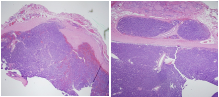 Similarly, atypical adenoma is a rare cause of primary hyperparathyroidism. It is certainly uncommon for an atypical parathyroid adenoma to present with severe hypercalcemia, although calcium level of 23.3 has been reported by due to an adenoma.12 The majority of patients with parathyroid carcinoma and atypical adenoma can be easily distinguished from patients with primary hyperparathyroidism due to classic adenoma, but distinguishing these conditions from each other is more difficult because of lack of precise clinical and histologic criteria. Those tumors with worrisome features but not diagnostic of malignancy, fall under category of “atypical adenoma.” Clinically, parathyroid cancer more commonly presents with palpable neck mass, hoarseness of voice and profound Hypercalcemia.13 Histopathologically, atypical adenoma and parathyroid cancer share features such as fibrous capsule, fibrous trabeculae, trabecular growth pattern and mitotic figures, however true capsular, tissue and vascular invasion along with recurrence is exclusive to parathyroid cancer.14 Existence of local recurrence or metastatic disorder is the single and reliable characteristic in distinguishing between benign and malignant parathyroid disorders.15