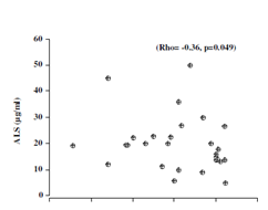 Untreated hyperthyroid patients had significantly lower ALS concentrations than normal control subjects (patients vs. controls, 15.9±1.5 vs. 20.0±0.7 μg/ml, p=0.012). Levels of ALS increased significantly, after 6 months therapy with antithyroid drugs, to levels (20.1±1.8 μg/ml, p=0.006, compared with pre-treatment level) similar to those of control subjects (Figure 1).