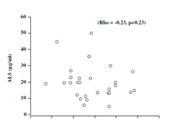 Conclusion: These results demonstrate that untreated hyperthyroidism is associated with reduction in ALS and IGF-1. Due to the fact that ALS and IGF-1 were related inversely with thyroid status and their concentrations were normalized with euthyroidism, it would be possible to consider their reductions as helpful markers of altered thyroid status, namely hyperthyroidism.