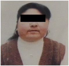 A 35-year-old female was referred in Mai 1999 to our department for oligomenorrhea, baldness and weight gain evolving over 2 years. She doesn’t have any medical record and she is not taking any specific treatment especially corticosteroids. In her familial history, we found a sister and a niece with breast cancer and a brother died of colon cancer. The physical exam revealed a moon face, a moderated hirsutism, a buffalo neck, an abdominal obesity, a red striae and a thin skin (Figure 1).