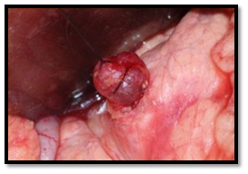 After establishing the diagnosis and the proper localization of the tumor, surgical enucleation of the tumor is the treatment of choice Preoperative localization of insulinoma improves cure rate and reduces complications, but may be challenging. The patient should be hospitalized and preoperative preparation arranged at least one day before surgery. Dextrose 10% solution is infused to avoid hypoglycemia particularly after mid-night, and diazoxide is administered on day of operation in order to reduce the need for glucose supplement and to avoid hypoglycemia. Consultation of the anesthesiologist to plan precise intraoperative blood glucose monitoring is necessary and blood glucose levels should not fall below 40-50 ml/dl. The majority of insulinomas is small and may not be easily exposed during the surgical procedure, particularly if they are not located at the anterior surface of the gland. Enucleation is the procedure of choice for all benign insulinoma. Traditionally, blind distal pancreatectomy has been considered the standard surgical procedure, when a tumor could be not visualized and/or palpated intraoperatively, but with advance in imaging this procedure had been almost abandoned. Preoperative EUS and IOUS as well as careful surgical palpation have an almost 100% sensitivity in identifying normally localized (intra-pancreatic) small insulinomas (Figures 12A), (Figure 12B) & (Figure 12C).
