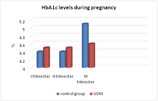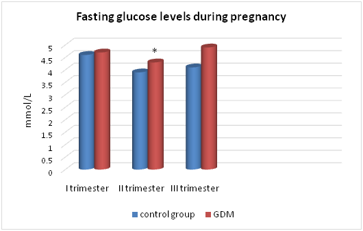 Average age in the group of women with GDM was 31.46 ±5.62 year, average age in the control group was 30.13±5.81 years. Average body mass index (BMI) in the group of women with GDM was 29.61 ±5.90 kg/m², BMI in the control group was 29.80±6.15 kg/m².