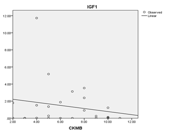 In the present study IGF-1 and CK-MB were directly related in IHD group but not in control group. This showed that amount of IGF-1 released in IHD subjects was associated with CK-MB release.
