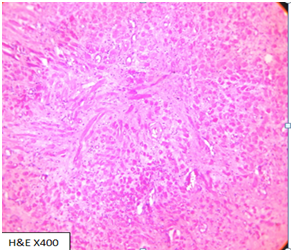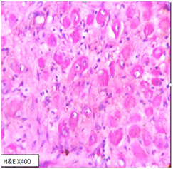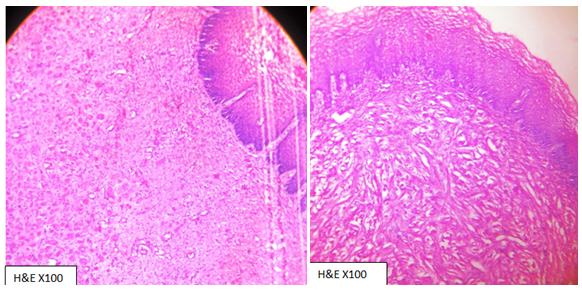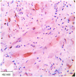 40years female presented with vaginal wall polyp for 6months underwent polypectomy. Grossly, received single grey white soft tissue mass measuring 2cm in diameter. Formalin fixed paraffin embedded tissue sections were made and subjected to Haematoxylin and Eosin staining. H&E section studied on low power view showed well circumscribed mass within the submucosa having irregular borders with brightly eosinophilic cells with small nuclei (Figure 1&2). High power view revealed large polygonal and strap shaped eosinophilic cells with occasional striation and the nuclei are small, round and regular (Figure 3&4).