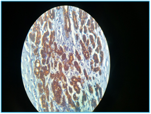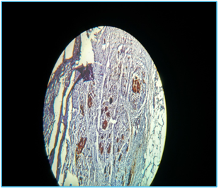 On cut section, the Tumor was capsulated and showed areas of necrosis, hemorrhagic and cystic areas. Microscopically, the tumor composed of oval to round cells arranged in an organoid pattern, separated by a delicate vascular network, giving an appearance of classic Zellballen pattern. The tumor cells have abundant acidophilic cytoplasm containing granules with moderate variation in size and shape and insignificant mitosis. Areas of variable necrosis and hemorrhage were noted (Figure 1) and the diagnosis of pancreatic paraganglioma was made and was advised for IHC. IHC markers includes cytokeratin cocktail which was positive in tumor cells (Figure 2), S 100 positive in sustenticular cells (Figure 3), chromogranin A positive in tumor cells (Figure 4) and invalid presentation of Ki67. The patient’s post-operative course was unremarkable and there was no evidence of recurrence on follow up with USG report.