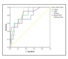 Neonates with sepsis develop thrombocytopenia, possibly because of disseminated intravascular coagulation (DIC) and the damaging effects of endotoxin on platelets. In this study, we found thrombocytopenia with cut off value<150x109/L had sensitivity of 60.0%, specificity 68.0%, PPV 27.3% and NPV 89.5%. This parameter could be used as an early but nonspecific marker for sepsis. These results were consistent with other study.16,17 Considering high mortality and morbidity associated with neonatal sepsis, tests with high sensitivity and NPV are most desirable because all genuinely infected newborns should be identified and treated. Flow cytometric analysis has the advantage over conventional immunological assay methods which being able to localize the activated markers to a specific cell type.