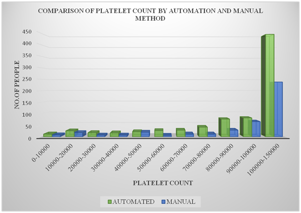 Figure 9 Comparison of platelet count by automated and manual method.
