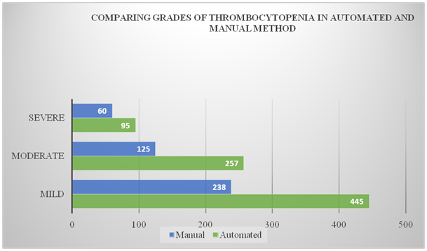 Figure 10 Comparison of grades of thrombocytopenia in automated and manual method.