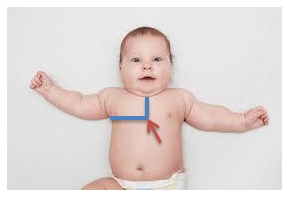 Figure 1 The arrow is pointing to the xiphisternal point (Ren16). The junction between the midline and the transverse line in fifth intercostal space.