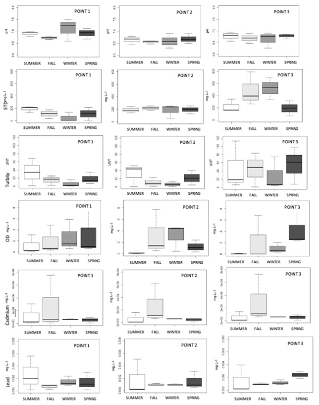 These results show that there is little evidence for standardizing the pattern of behavior for the load of pollution during the seasons of the year, with the exception of the following: in Summer and Fall which can be regarded as periods with a greater capacity for cleansing the atmosphere and land surface, as well as when there is a greater demand for the use of water. Generally speaking, the quality of water in the urban rivers worsened in the dry season, particularly when there were industrial pollutants and domestic waste.21