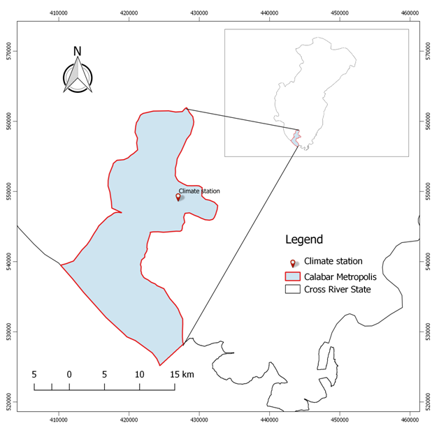 Calabar Metropolis, which comprise of Calabar Municipality and Calabar South Local Government Areas (Figure 1), has a total land area of 328.23km2.4 Calabar is the administrative capital of Cross River State. The town is flanked on its eastern and western borders by two large perennial streams namely: The Great Kwa River and the Calabar River, respectively. The climate is equatorial and semi-equatorial in nature, characterized by high humidity and substantial rainfall.17 Precipitation characteristically occurs during the wet season (April – October) shows two peaks in June/July and September/October. A short dry season usually called “August break” separate the peaks. In some years, rainfall reading has been observed to go up to over 3000mm.18
