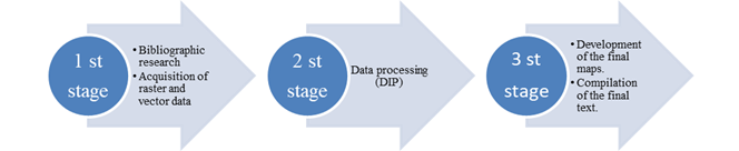 This study was conducted in the Administrative Region of São Sebastião, located in the Federal District/FD, Brazil, as illustrated in Figure 1. The study area is delimited by Universal Transverse Mercator (UTM) coordinates: 8241518.84 S, 198071.58 E and 8224279.81 S, 220332.75 E, providing a specific geospatial perspective for the conducted analyses. To carry out this work, three methodological stages were adopted, as described in Figure 2. The methodology of this study was divided into carefully planned stages to provide a comprehensive and accurate analysis. Initially, a literature review was conducted, representing the first stage, allowing the examination of various approaches for obtaining products through Remote Sensing (RS). This facilitated the identification of the best strategies and methodologies employed in acquiring information through Digital Image Processing (DIP), highlighting the importance of classifying these products. To carry out this work, various spatial data were required, acquired freely from online platforms of various government agencies in Brazil and internationally. Given the data availability and in pursuit of the best results, a fifteen-year analysis interval was chosen, covering the period from 2005 to 2020, with analyses every five years (2005, 2010, 2015, 2020).