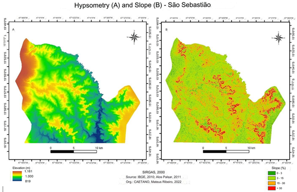 Figure 7 Hypsometry and Slope of the Administrative Region of São Sebastião/FD.