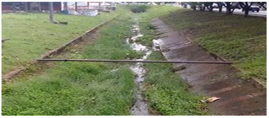 Another no less important situation is the irregular cleaning of drainage ditches and their maintenance by those who are entitled to do so, conditioning the flow of water due to the growth of grass inside them. As illustrated in Figure 1.