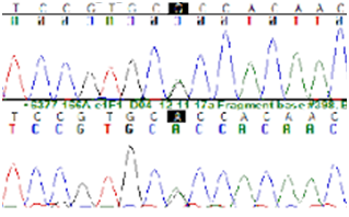 In addition, the presence of alveolar walls thickened with vascular congestion and hemorrhage mural thickening and diminution of luminal caliber were observed. The presence of muscularized intracinar arteries and decrease of capillaries in relation to alveolar walls was evidenced. The veins were dilated and surrounded by edematous stroma. With this finding, persistent pulmonary hypertension and congenital alveolar capillary dysplasia were concluded. DNA was extracted from the lung tissue and the genomic DNA was used for the PCR amplification of two coding exons of the FOXF1 gene (mRNA reference sequence: NM_001451.2). DNA sequencing analysis was performed using the Sanger method. A pathogenic, heterozygous missense variant: c.290G>A (p.Arg97His) was identified (Figure 5). Analysis of parental samples showed that the mutation arose de novo.