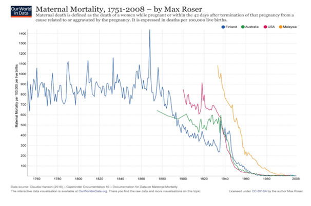 Figure 1 Maternal mortality in the United States from 1900 compared with other industrialized countries and Malaysia.
