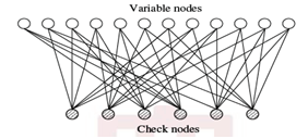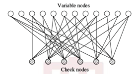 Generally speaking, the regular LDPC code is a linear block code whose parity check matrix H has column weight g and row weight r, where r = g(n/m) and g<<m. If H is low density, but its row column weight are not both constant, then the code is an irregular LDPC code. For regular codes, the corresponding H matrix has βr ones in each row and βc one in each column. It means that every codeword bit participates in exactly βc parity‒check equations and that every such check equation involves exactly βr codeword bits. LDPC codes have been constructed mostly using regular random bipartite graphs. A graph whose nodes may be separated into two types, with edges connecting only nodes of different types is called bipartite graph. The two types of nodes in a bipartite graph are the variable nodes (VN) and check nodes (CN). The bipartite graph of a code is drawn as follows: CN i is connected to VN j whenever element hij in H is a 1. Observe from this rule that there are m CNs in a bipartite graph, one for each check equation, and n VNs, one for each code bit. Further, the m rows of H specify the m CN connections, and the n columns of H specify the n VN connections.2,17‒19