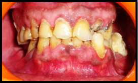 The most difficult to manage is Polycythemia vera (PV), a myeloproliferative disorder characterized by excessive proliferation of erythroid elements along with granulocytic and megakaryocytic cells. In polycythemia vera (PV) red blood cell (RBC) volume increases to an erythrocyte count of 6 to 12 million/mm, with a hemoglobin concentration of 18 to 24 g/dL, leading to increased blood viscosity and thrombosis. Polycythemia is divided into absolute erythrocytosis (a true increase in red-cell mass) and relative erythrocytosis (the red cell mass is normal, but the plasma volume is reduced due to the loss of tissue and intravascular fluid). In relative polycythemia, the hemoglobin rarely rises more than 25%, and there are no appreciable oral changes but in absolute erythrocytosis significant oral changes are observed. The clinical oral manifestations include pale mucosa, reactive keratosis, and different forms of candidosis, mucosal ulcers, gingival bleeding and various degrees of gingival enlargement.5