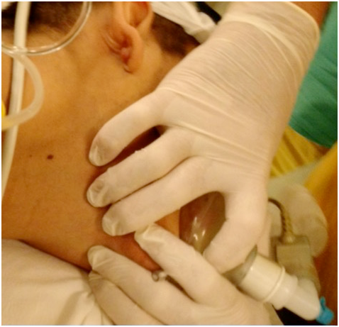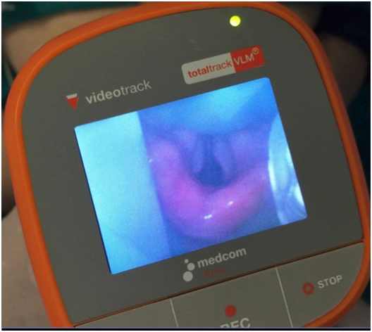 The physical examination of the patient’s airway, did not give any prediction of difficulty in addressing it. The forced decubitus position prompted the reason for the selection of a Video Laringeal Mask. Total track VLM was chosen for the following reasons: