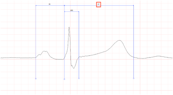 The QT interval must include the length from the beginning of the Q wave (in its descending branch) until the end of the T wave on the electrocardiogram (Figure 1).