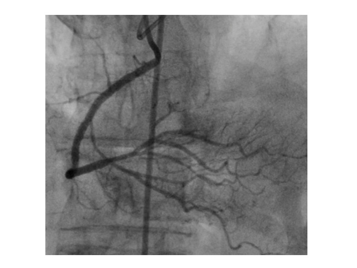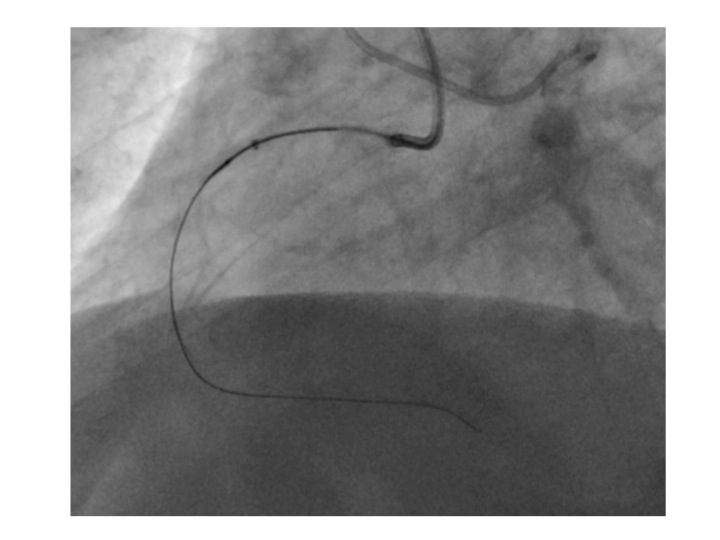Figure 4 Coronary angiography showing chronic total occlusion of proximal right coronary artery with the coronary wire.