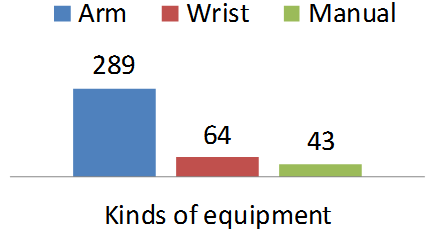A 92.95% (396 patients) had blood pressure equipment at home, out of which 73% (289 patients) had electronic arm gadgets and 16.16% (64 patients) had electronic wrist gadgets. The remaining 10.84% (43 patients) had manual blood pressure equipment (Figure 2 & 3).