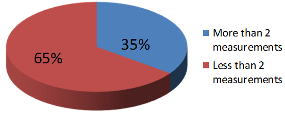 Regarding the technique in use for blood pressure measurement, only 35% (149 patients) performed at least 2 measurements (Figure 5).