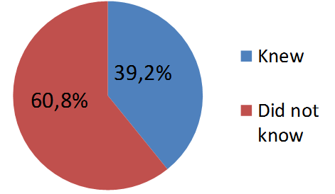 Lastly, knowledge about the disease was evaluated through the answered threshold value to determine arterial hypertension (taking into account that the expected values for at-home normal measurements were figures below 135 mmHg for systolic blood pressure and/or 85 mmHg for diastolic blood pressure) (Figure 4 & 5). Only 39,2% (167 patients) were in the know about these expected values (Figure 6).