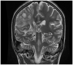 We present the case of a 16-year-old male patient, born in Veracruz Mexico with history of pulmonary stenosis, hypoplastic right ventricle, interauricular communication and patent ductus arteriosus who had surgical intervention with Blalock Taussig shunt on November of 2003. On July 11th 2016 he started with numbing of the left half of his face including the tongue, for which he didn’t seek any medical attention. On July 18th 2016 he had a generalized seizure, which lasted 10 minutes, according to his family. On July 28th 2016 he started to lose strength of the left half of his body and wasn’t able to walk or move his left arm. With these symptoms he was admitted to our hospital where he also referred headache. CT scan showed hypodense images on right temporoparietal region and reinforcement images on right parietal region suggesting brain abscesses (Figure 1 & 2). With these findings, along with the clinical presentation, the diagnosis of brain abscess was made and antibiotic treatment was started with third generation cephalosporin, metronidazole and glucopeptide. The patient was evaluated by the neurosurgery team who decided to differed surgical treatment because of the size of lesions in CT scan and improvement in next CT scan images. On August 8th 2016 a MRI (Figure 3) of the brain showed capsule formation. The patient continued with antibiotic treatment and dexamethasone in reduction dose. A new MRI of the brain, on August 29th 2016, showed abscesses of less than 3 cm, this along with the patient improving neurological state and decide no need for surgical treatment. The patient completed 61 days of parenteral treatment with ceftriaxone, metronidazole and vancomycin. The last imaging study previous to the discharge of the patient showed brain abscesses of less than 0.5 cm.