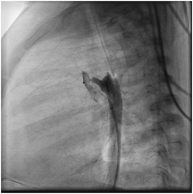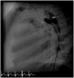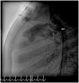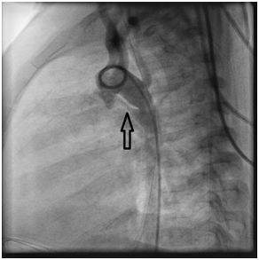 Under GA, Cardiac cathtrization done. Angiogram of aorta showed tiny PDA (Figure 9).