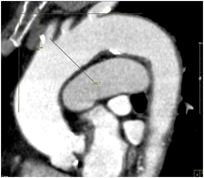 Chronic left ventricular pressure or volume overload from any cause leads to LV hypertrophy. Eventually, all chambers of the heart, especially LV & LA dilate, leading to increased chamber volumes holding increased volumes of blood, resulting in not only increased LV mass but also increased LV weight (LV mass plus mass of blood contained in LV cavity). To date, there are no studies that identify the effect of these variables on the aortic arch type. Our study demonstrates a positive correlation of older age, aortic stenosis, reduced EF and increased LV weight with the presence of Type II and III AAs. Previous work done by our group has demonstrated cresting of the major aortic arch vessels along a centerline traversing the superior most aspect of the arch; we believe this “cresting” results because the arch is literally suspended in the thorax by the major AA branches.7 The arch via the ascending aorta in turn suspends the heart in a pendulum like fashion in the mediastinum. We hypothesize that a lifetime of downward drag by a vigorously pulsating, hypercontractile, hypertrophied and later dilated and therefore a heavier heart exerts an exaggerated downward drag on the rightward end of the AA resulting, over time, in a Type II and finally a Type III arch. Thus, almost all the patients in our study with critical aortic stenosis had a Type III arch.