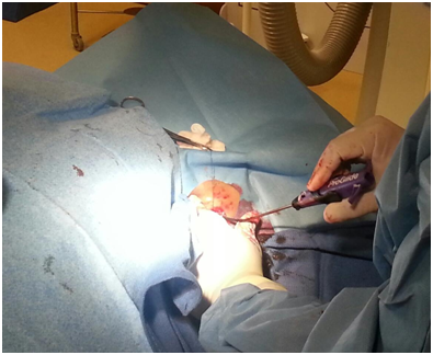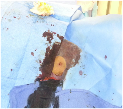 Figure 4B Deployment of perclose prior to insertion of 13.5 Fr sheath for Impella insertion through the L axillary artery for a high risk PCI.