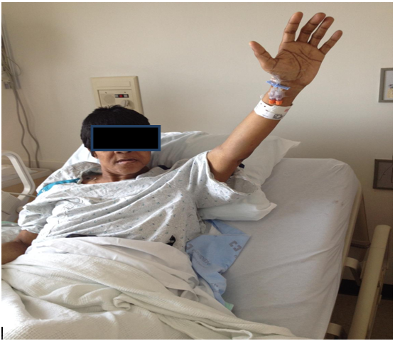 One clinical implication of the ubiquitous nature of Type III arches in our very elderly aortic stenosis patients relates to percutaneous access for interventions such as TAVR. In specific, with the left arm hyper extended over the head, the trajectory of the left axillary and left subclavian arteries falls along the trajectory of a Type III arch (Figure 3). This trajectory makes an axillary approach an attractive alternative to trans: apical and trans: aortic approaches in patients with advanced lung disease or severe peripheral artery disease (PAD) who are not good candidates for either transfemoral or transapical/transaortic approaches. Finally, this information coupled with the fact that axillary artery size is quite comparable to femoral artery size in most patients,8,9 a totally percutaneous left axillary artery approach utilizing a double Per close large bore arteriotomy closure at the end of procedure is highly feasible for a totally percutaneous TAVR as demonstrated by Shäfer et al.10 and also for totally percutaneous Impella device insertion and removal (Figures 4A to 4E) as shown by our group.8
