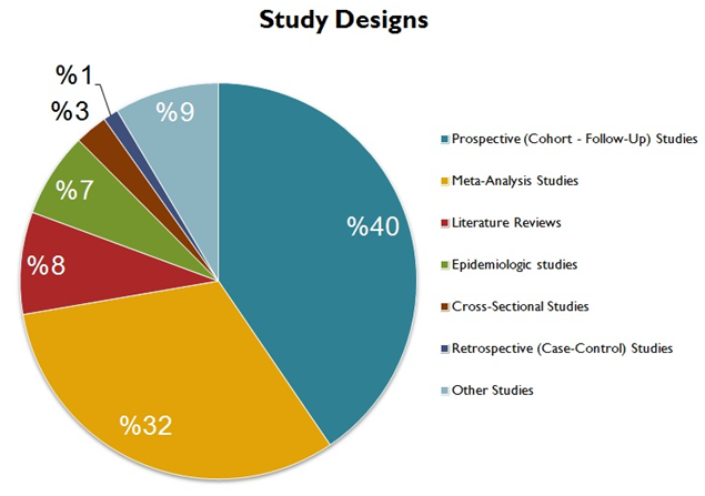 In this review, some samples were collected from different study designs that were done on both healthy people and CHD patients in different periods of time.7 In this review, I covered 20 studies directly and approximately 543 other studies that were reviewed and discussed in the 20 studies. I collected data from Prospective (Cohort-Follow-Up) Studies, Meta-Analysis Studies, Literature Reviews, Epidemiologic Studies, Cross-Sectional Studies, Retrospective (Case-Control) Studies, and Other Studies (Table 1 and Figure 1).