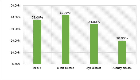 Regarding to the proportion of common HTNC, this study revealed that about 38%, 42%, 34% and 20% of participants were aware that HTN can lead them to stroke, heart disease, eye disease, kidney disease, respectively. This study finding was lower compared to the study conducted in Karachi, South Asia where the awareness HTNC was 100% for stroke, 95.5% for heart diseases, 59.1% for kidney disease and 54.5% for eye disease.32