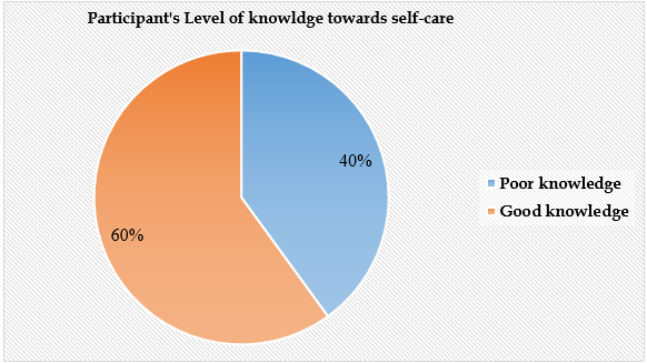 The findings of this study revealed that the level of good knowledge, favorable attitude, and good practice towards self-care was 60.0%, 52.5%, and 50.8%, respectively. Educational level and receiving information about self-care from healthcare providers during follow-up were factors significantly associated with knowledge towards self-care. Having good knowledge towards self-care was significantly associated with attitude towards self-care. Whereas, receiving information about self-care from healthcare providers during follow-up, having good knowledge towards self-care, and having a favorable attitude towards self-care were factors significantly associated with self-care practice.