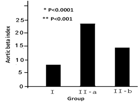 Aortic stiffness index (beta) was calculated according to the following formula: (β) Index=ln (systolic blood pressure/diastolic blood pressure)/AOST.