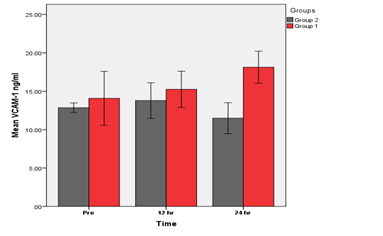 A Comparison of BVS &DES groups for mean of VCAM-1 levels at different times.