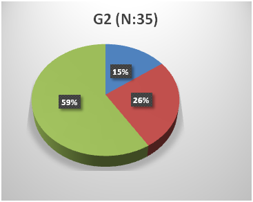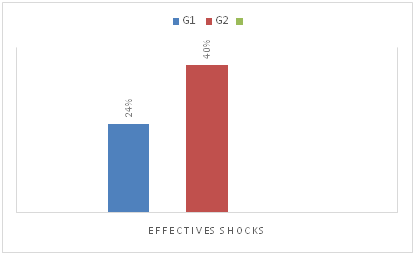 Figure 2 Bar chart that compares the percentage of effective crashes in each group. A predominance is observed in the Chagasic myocardiopathy group (G2).