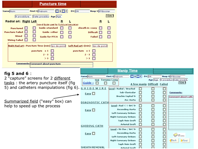 Figure 2 In a few clicks, specific data are captured : art.accsee, sheath size, hydrophilic or not material, short or not and wrist size ; 8 datamed are ‘check-box like’ allowing direct statistics ; each datamed is unique and ‘universal’.