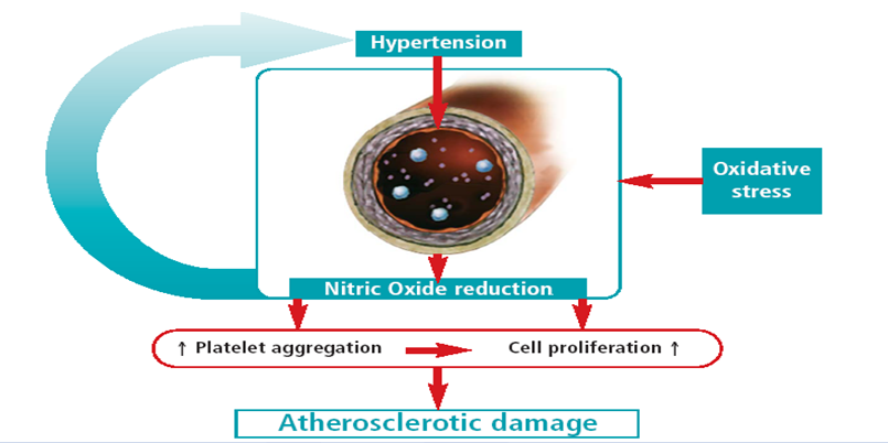 Essential hypertension is a condition associated with endothelial dysfunction which is caused by production of oxygen free radicals that destroy nitric oxide and impair its beneficial and protective effects on vessel wall (Figure 2).3,4