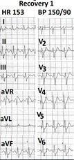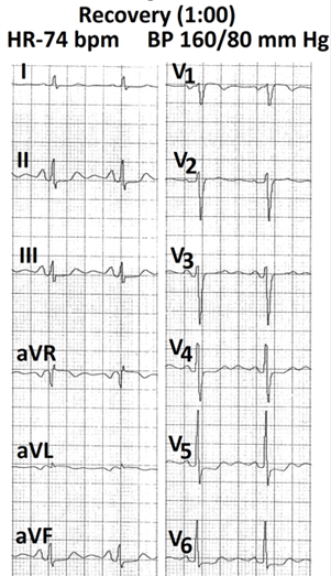 Figure 10 Electrocardiogram recorded at the end of third minute of recovery showing further improvement in ST segment deviations.