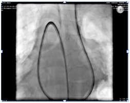 Figure 2 IVC draining across the azyguous continuation into the right superior vena cava and then follow through the dilated coronary sinus in the right atrium.