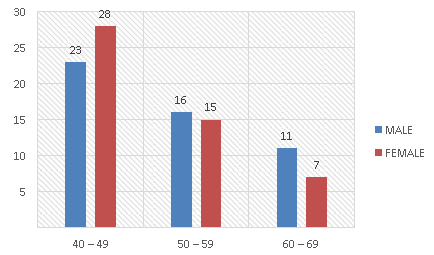 Figure 1 shows a general distribution of age and sex of patients with home blood pressure measurement in the high Andean communities of the province of Huamanga, where a lower percentage (39%) corresponds to the male sex and in the highest proportion were female (61%). For the age group of 40 to 49 years there is a greater predominance of the female sex with 28% and the male sex with 23%, for the other age groups of 50 to 59 years and from 60 to 69 years the male sex predominates with a slight percentage.