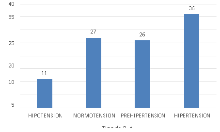 In Figure 3. We observe the classification of arterial hypertension in relation to the amount of salt consumed by the high Andean population of the province of Huamanga, according to the amount of salt consumed. 11% of hypotensive patients consume less than 4 grams of salt, normotensive patients use 5 grams of salt, with a percentage of 27% that manifest normal consumption as indicated by the WHO, while pre-hypertensive patients consume 7grams of salt correspond to the 26% but in a greater proportion we find people who consume more than 10grams of salt with 36% this makes us see that the high Andean population likes a lot of salt and they even made us try a sample of their food, including the very salty cheese, Much consumed in the rural population along with fried or parboiled potatoes, corn roasted with salt, other residents even say they add more salt when their food does not have a taste like the fruits of caigua, avocado and other fruits. It is more to observe in the patio of their houses drying the salted meat or jerky as a way to preserve their food.
