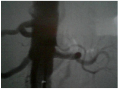 A 56-year-old female patient came at the end of August to the office due to uncontrolled hypertension. Since she was a thin person without a family history of persistant hypertension, suspicion of secondary hypertension was induced and advised for biochemical end imaging tests. The final diagnosis was renovascular hypertension, the most common cause of secondary hypertension. Renal arteriography indicated a 99% stenosis to the left and the patient underwent a successful stent implantation. After angioplasty, blood pressure returned to normal and the patient did not receive medication. Invasive therapy is recommended for resistant hypertension (at least 4 antihypertensive drugs), aggravation of renal function and patients with flash pulmonary edema or congestive heart failure with preserved ejection fraction (EF).