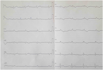 Elderly patients also often develop AV node and His-Purkinje disease. It is common for patients to present to the emergency department with symptoms of fatigue, exercise intolerance, dizziness, near syncope, or syncope.4. Our case was applied to emergency department similar symptoms and admitted to intensive care unit. Drugs such as digoxin or calcium channel blockers, can be caused hyperkalemia or hyperkalemia related complete AV block. The patient’s companion informed us that she didn’t take any medication except for insulin.