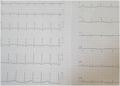 Several case reports have published about hyperkalemia related complete AV block in the literature. But these cases’ serum potassium levels are greater than 6.3 mmol/L or serum potassium levels are lower than 6,3 mmol/L and renal failure accompany to hyperkalemia.2,7 In spite of standard hyperkalemia treatment hemodialysis and pacemaker were required in the treatment of most patients. In presented case, despite serum potassium level was lower than 6,3 mmol/L and renal function parameter was normal, complete AV block occurred. The other interesting sign in our case, she was treated without the temporary pacemaker or hemodialysis. The elderly patients can be more sensitive in mild hyperkalemia than younger patients and clinical findings can occur earlier.