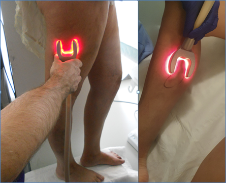 Figure 2 Exploration with transillumination . Suitable for visualization of reticular veins and telangiectasias subdermal.